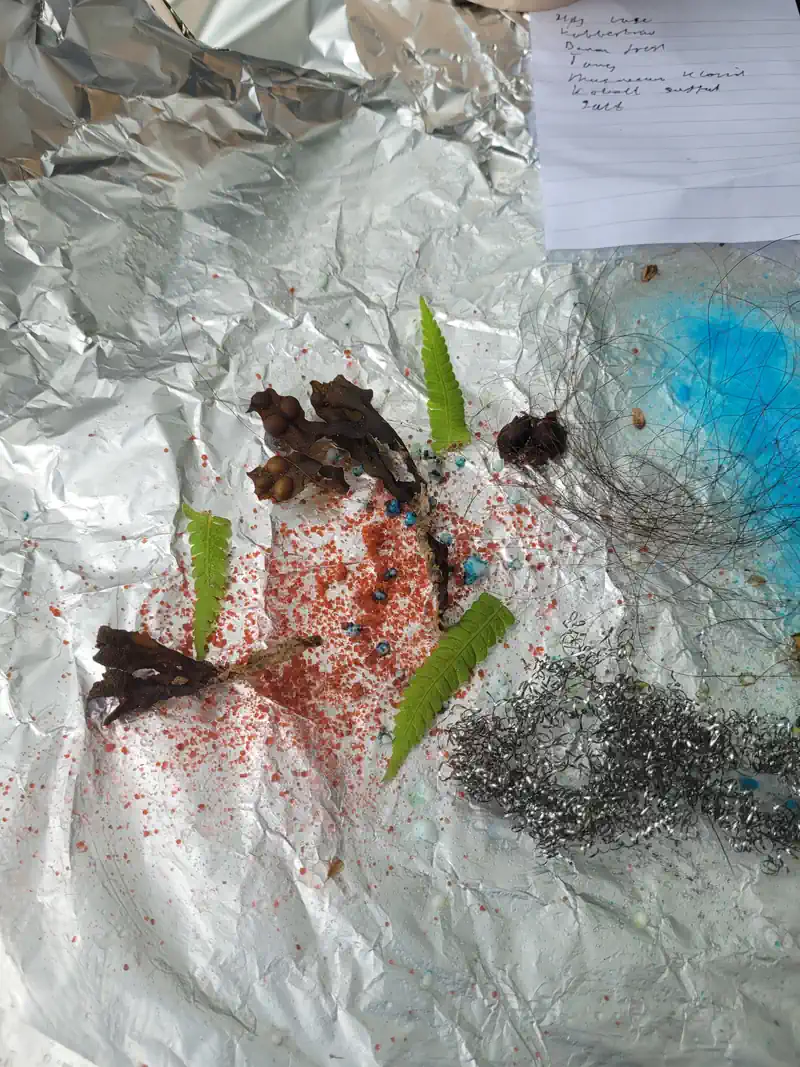 Forestil dig at gå en tur på stranden og finde materialer såsom tang, skaller, sand til din brænding.